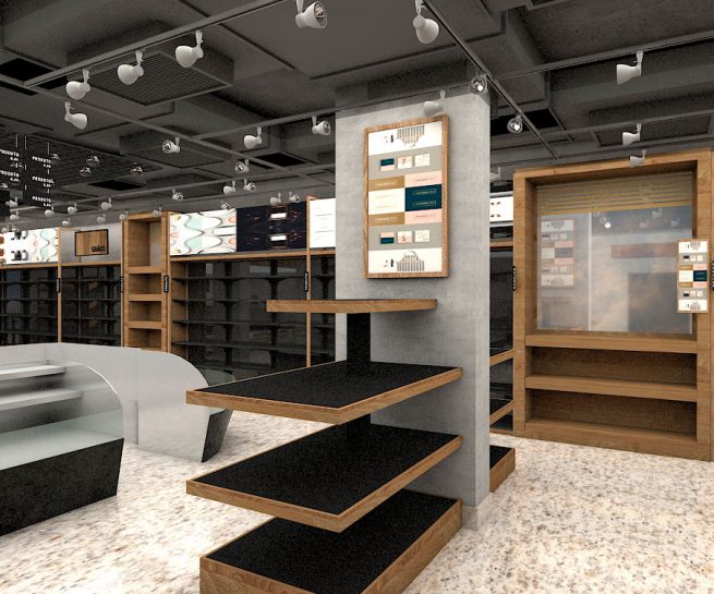 Realizamos estudos do circuito que o cliente faz desde a entrada da loja, passando pela vitrine, passando pelo seu lobby principal, gôndolas, estudando a transição entre os diferentes produtos até a sua experiência de pagamento e retirada do produto.